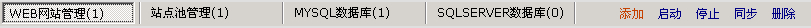 启动:启动单个或多个勾选的站点 停止:停止单个或多个勾选的站点 同步:同步单个或多个勾选的站点配置信息,包括IIS、ftp、mysql和用户账户密码。 删除:删除单个或多个勾选的站点,删除后数据不可恢复,谨慎使用!