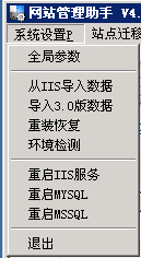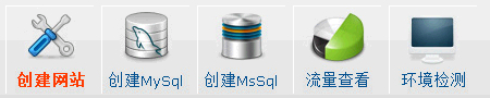 创建站点:用于新建一个站点 创建mysql:用户新建一个mysql数据库,mysql名称指:mysql用户名和mysql数据库名 编辑站点:选择一个站点,点编辑站点可以对站点配置进行编辑,如果原来创建了mysql的,取消“mysql已创建”的勾,将会删除mysql数据库! 重置密码:用于重置一个或多个FTP密码/mysql密码的重置 流量统计:用于统计IIS最后一次启动到当前的总web收发和总http请求数。 重启IIS:用于重启IIS服务器