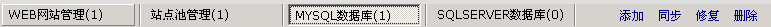 同步:同步单个或多个勾选的mysql数据库配置信息,包括数据库用户账户密码。 修复:修复已选数据库的错误 删除:删除已选数据库,删除后数据不可恢复,谨慎使用!