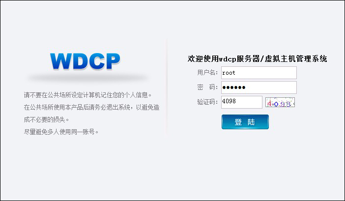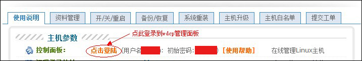 首先请将您的域名解析到您的IP地址,并且在我司提交白名单(白名单每小时自动刷新一次,刷新后生效)。待白名单生效后用您的域名加8080端口来登陆WDCP管理系统。如:http://www.abc.com:8080。(共享IP的主机,登录地址以控制面板中显示的链接为准。)