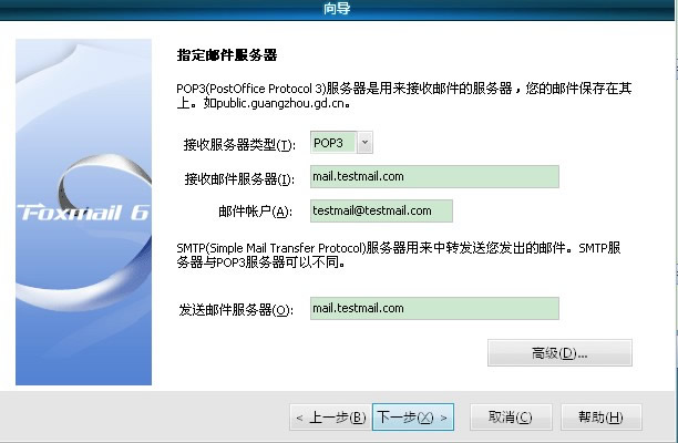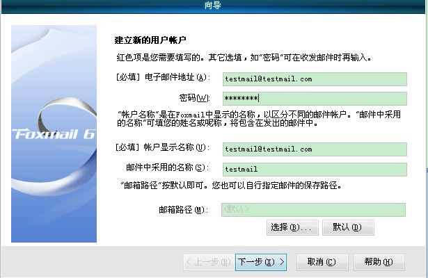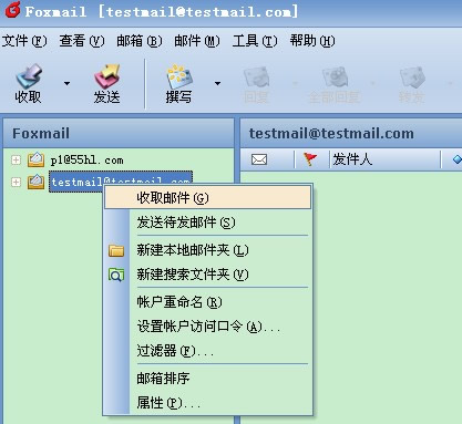 假设你的邮箱域名为“testmail.com”,在本地设置foxmail步骤如下: