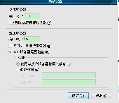 勾选“smtp需要验证”,选择“使用与接收邮件服务器相同的信息”,点击确定(如图4)