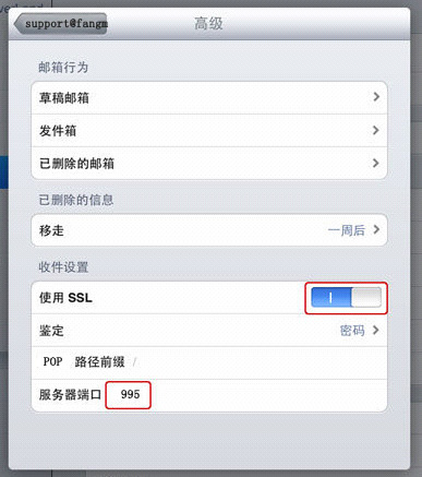 特别提醒:如果您使用的iPad是4.0以下版本的系统,SSL 是默认关闭的,建议在 高级设置中开启,开启方法如下: