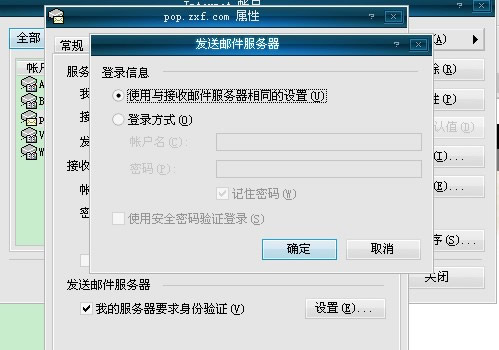 选择“使用与接收邮件服务器相同的设置”,点确定(如图9)
