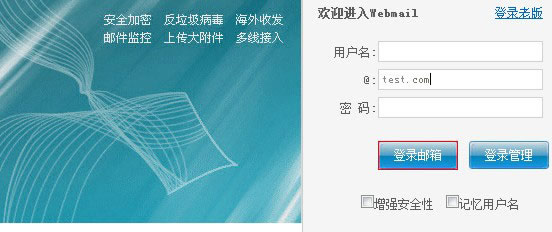 用户在浏览器中输入邮件服务器URL,“mail.您的域名”,进行登陆。当您输入正确的登录地址后,您就会看到邮箱用户登录界面。
