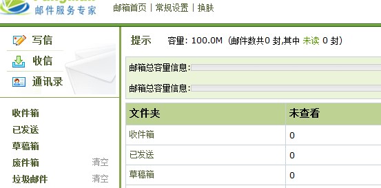 3. 邮箱的总容量、已占用空间和剩余空间