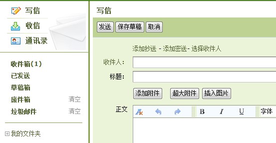 点击“写信”进入撰写邮件页面。
