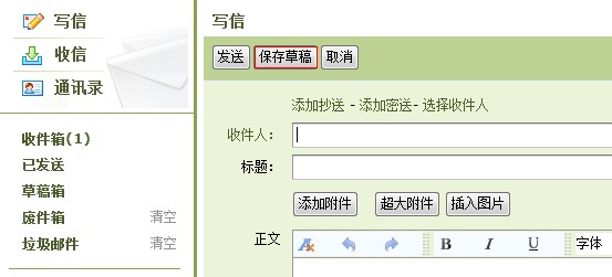 单击'保存草稿'键,系统会自动将您的邮件保存到草稿箱中,进入草稿箱,打开草稿邮件,可以继续撰写该邮件。