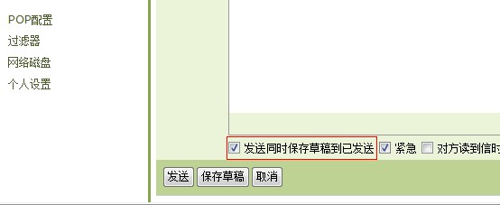 1. “草稿保存”复选框打勾,将所有已发送的邮件自动保存到“发件箱”中