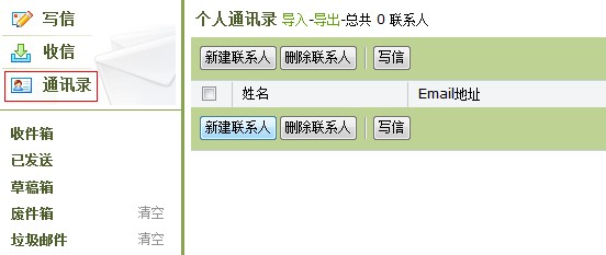 1. 单击菜单栏中的'通讯录',进入通讯录页面;