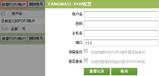 单击菜单中的'配置pop配置',单击'新增POP3帐户',进入POP设置页面