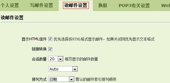 2. 选择“显示html邮件”,设置默认的读信界面为超文本格式