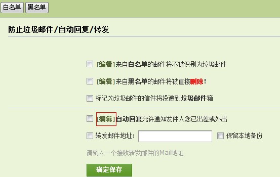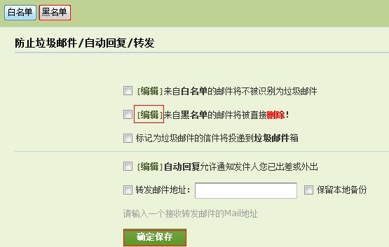 注意:1. 来自黑名单中地址的邮件,系统直接删除