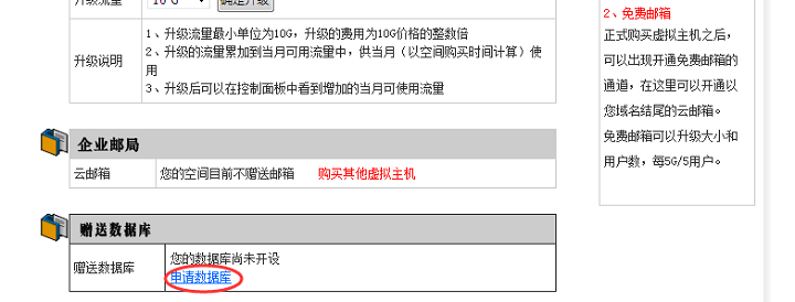 1、购买我空间均可或赠至少5M的数据库,申请步骤:登陆会员—>左侧列表中“产品管理”—> “虚拟主机”—>点对应的“站点名”进去后即可看到申请链接(如图1)