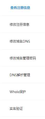 域名控制面板包括:1、查看注册信息;2、修改注册信息;3、修改域名DNS;4、修改域名管理密码;5、DNS解析管理;6、Whios保护;7、实名验证
