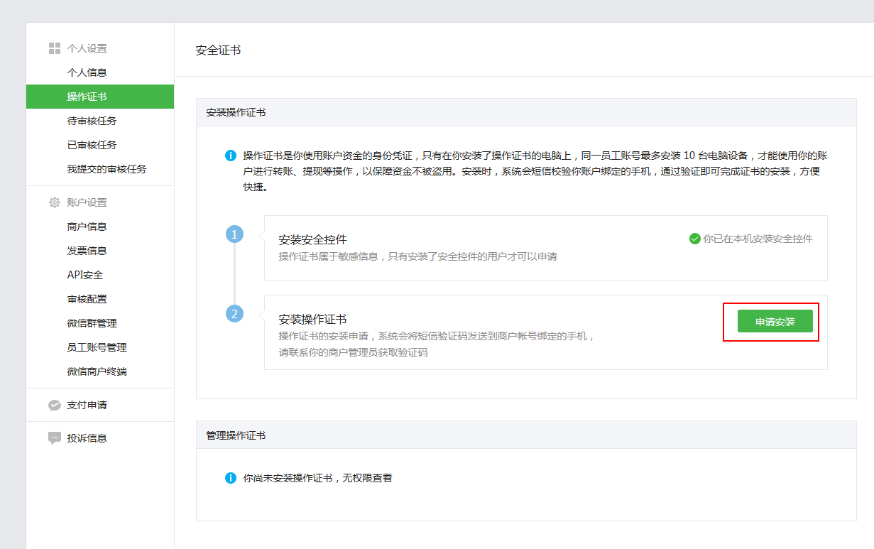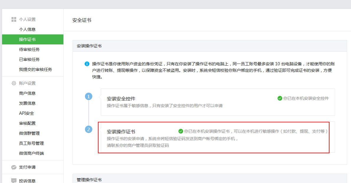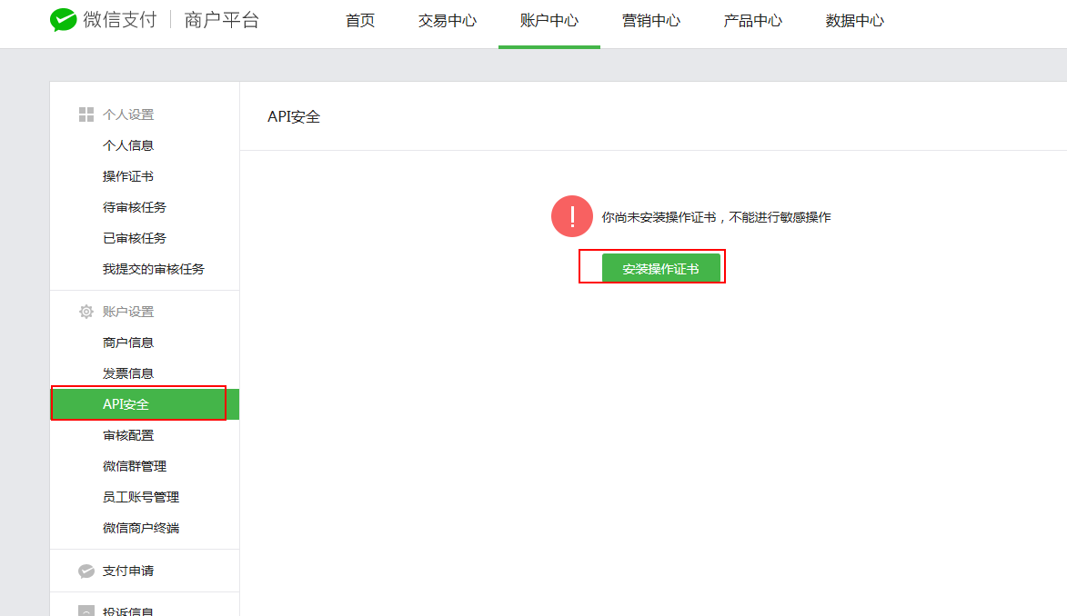 第二步:账户中心>API安全>安装操作证书